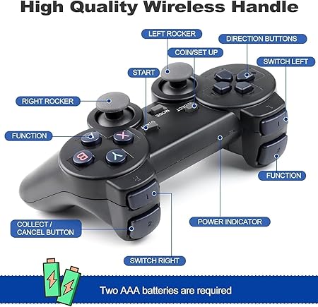 The game selection is huge, covering classics from NES, SNES, Sega, and more. If you grew up playing retro games, you’ll probably find some of your favorites here. The wireless controllers are a nice touch, though they run on AAA batteries (not included), so keep that in mind. The connection is mostly smooth, with only the occasional minor lag.