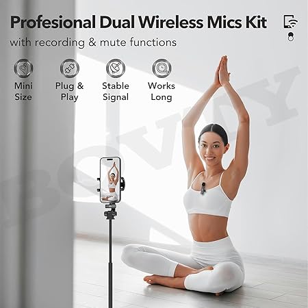 K9 Dual Wireless Lavalier Microphone Plug and Play, No Need APP & Bluetooth Collar Mic for All iPhone, iPad, Mac Devices for YouTube, Live Stream & Video Recording